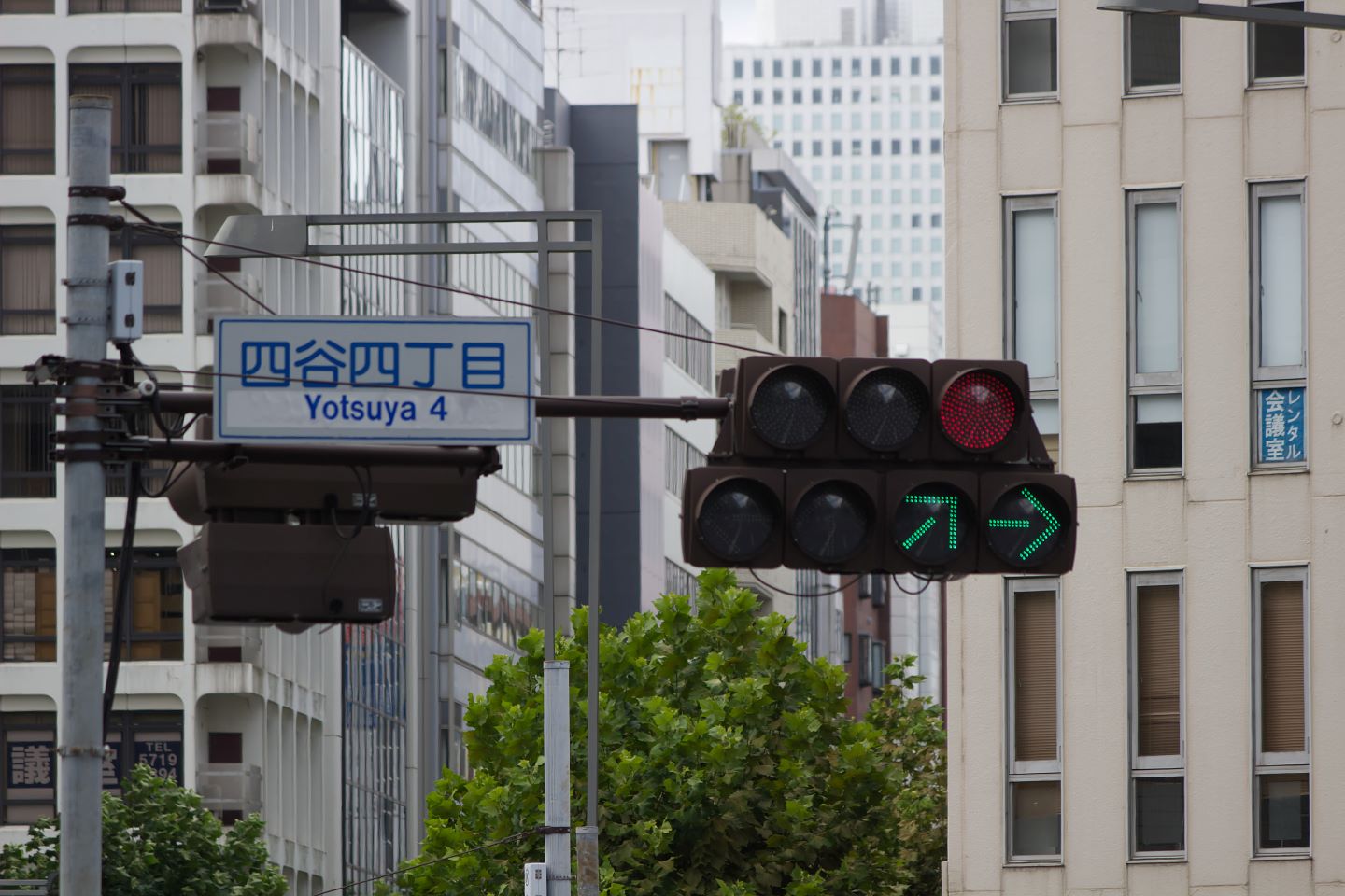 最初に目指すは四谷四丁目交差点! 四がいっぱい