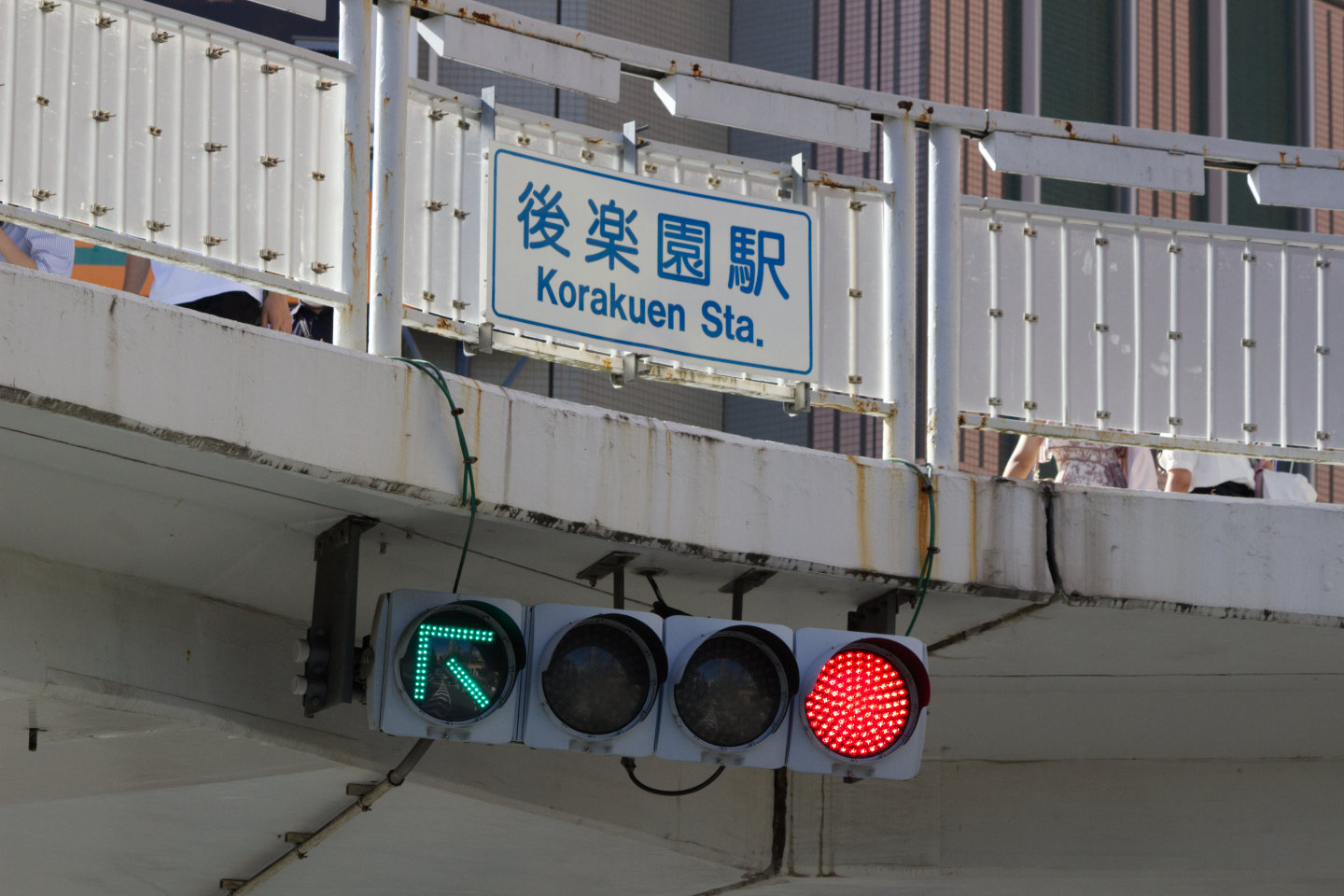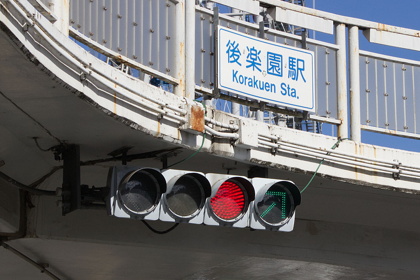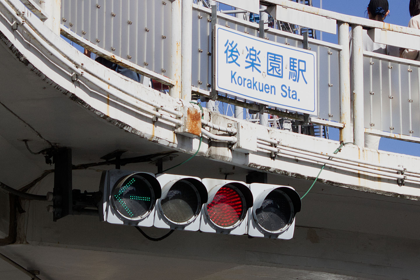 後楽園の信号機は、駅のホームから見えるので昔から知っていました