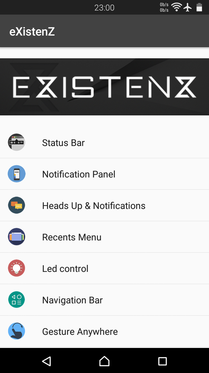 設定項目に「eXistenZ」が追加されており、開くと、このように色々設定が現れます。正直ROMのインストールで満足してしまった感。