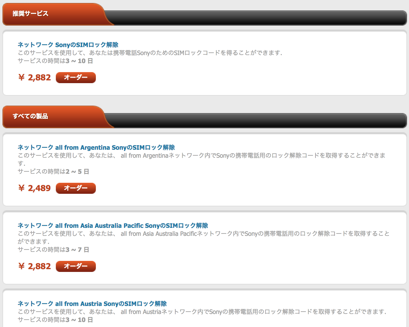で、更に問題点がありまして、auは中古端末のSIMロック解除をしてくれない模様。結果、海外サイトを使う羽目になってしまいました。とりあえず知ってるサイト(sim-unlock.net)を。