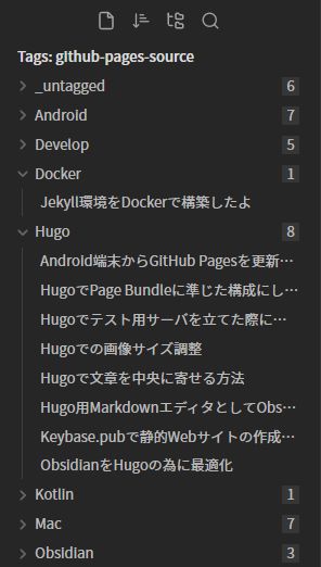 前の記事 でグラフ表示の為の小細工をしていますが、各記事のファイルに対して行う必要がある上、TagFolderを使えば十分参照しやすくなるので無理してやらなくていいかなと思います