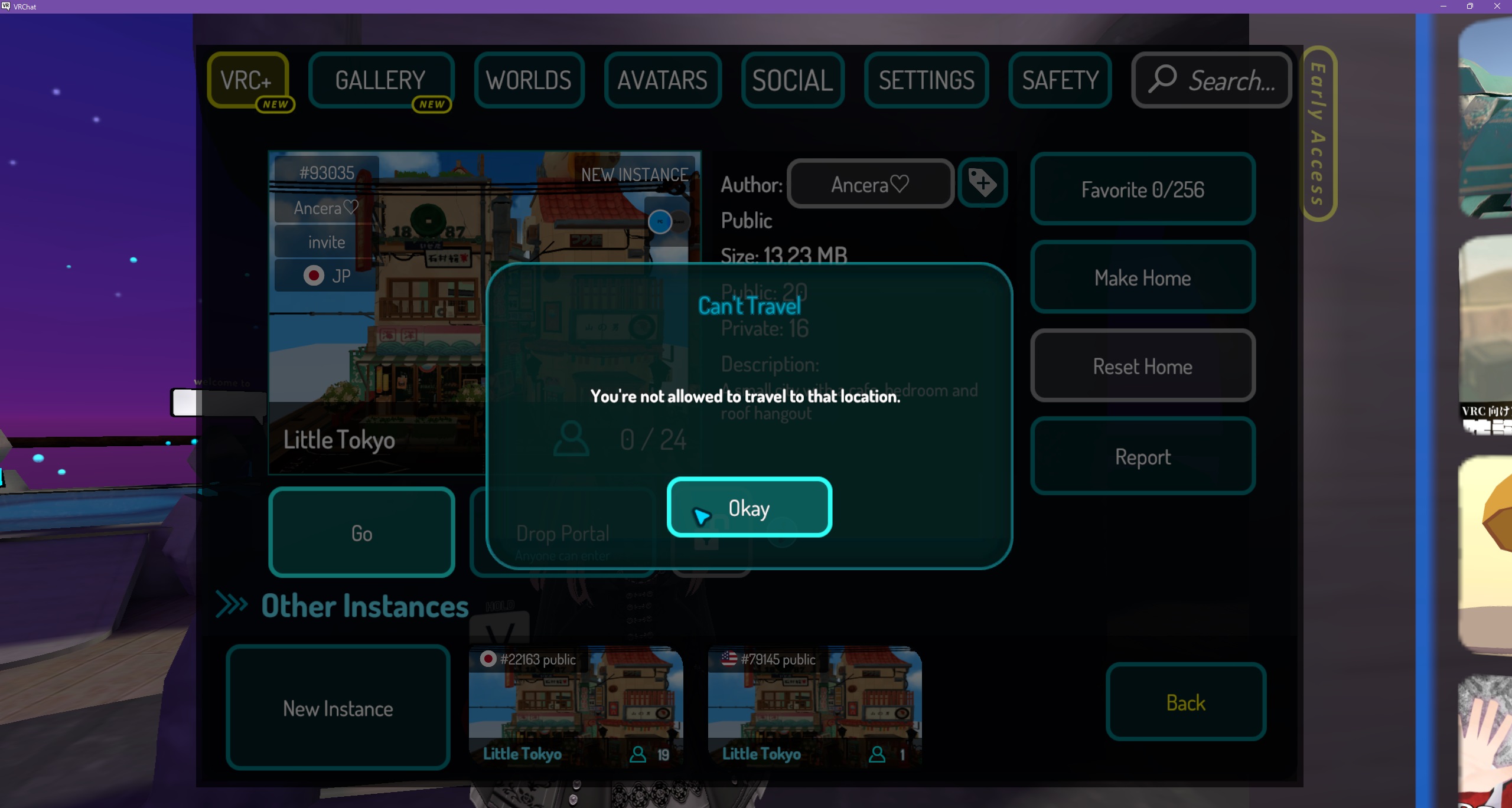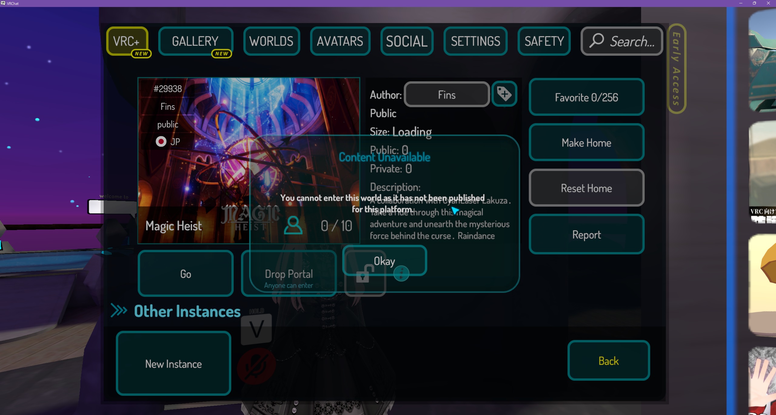 ワールドに入ろうとした時・プライベートインスタンスを作ろうとした時に失敗する