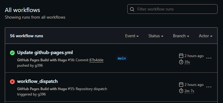 hugo-versionは最新になるようlatestを指定していますが、テーマの対応が追いつかない場合にビルドエラーを起こす可能性もあります 必要に応じてバージョンを固定する措置も要検討