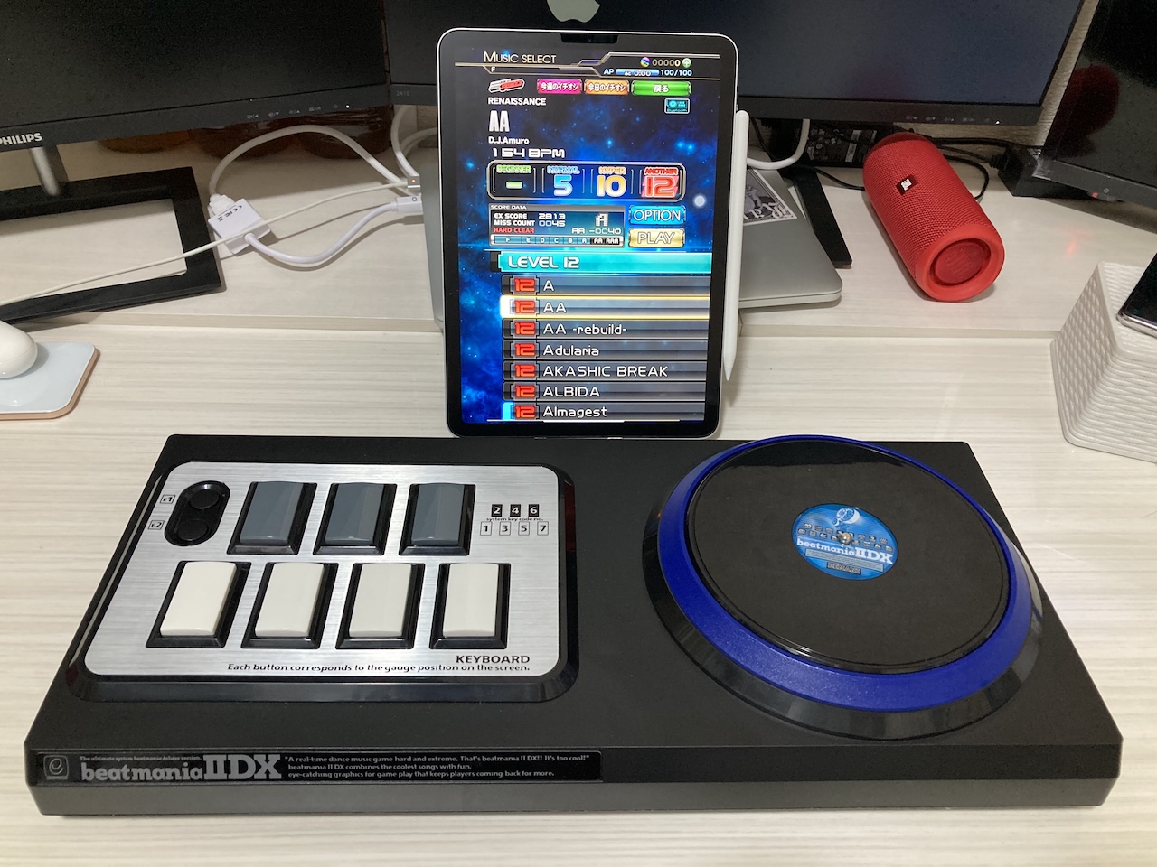 BMSはのプレイスタイルは大きく分けて2つ。キーボードでプレイするスタイルと、本家(または派生の非公式)の専用コントローラーでプレイするスタイル。筆者は先程の画像の通り、コントローラーでプレイしていました。