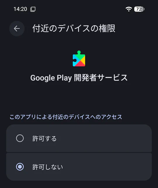 別のデバイスを用いたログインを行いたい場合、開発者サービスに「付近のデバイス」権限を付与する必要があります